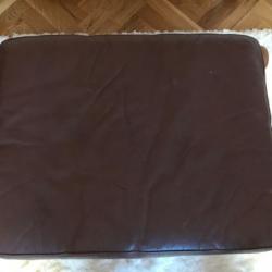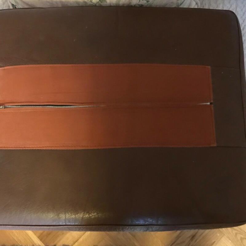 Frem Rojle stool 1950 teak. In very good condition for its age. Leather cushion very well used , has aRepair on one side . Zipper hard to operate.